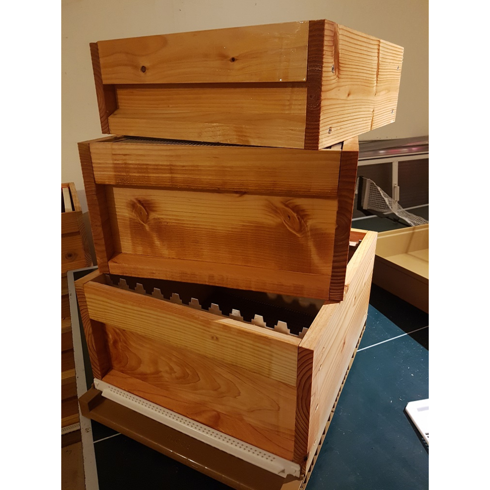 We hebben eerdaags een nieuwe versie, voor nog geen € 100,00 euro een complete kast van grenen. De douglas kasten komen niet terug, de prijzen voor Doulas zijn te ver doorgestegen en dus voor onze imkerij minder interessant geworden.