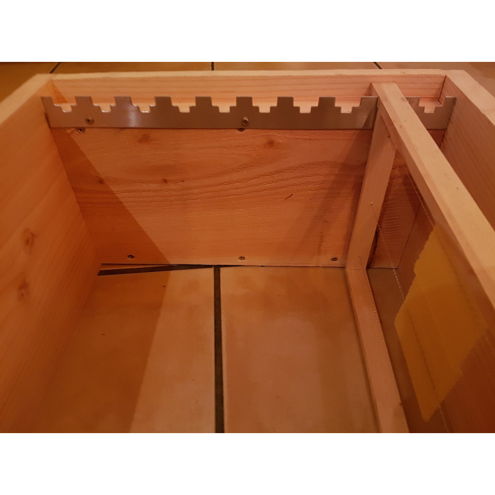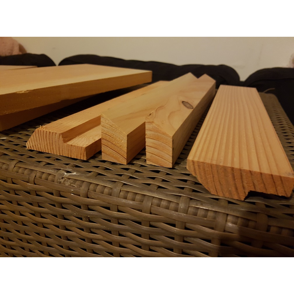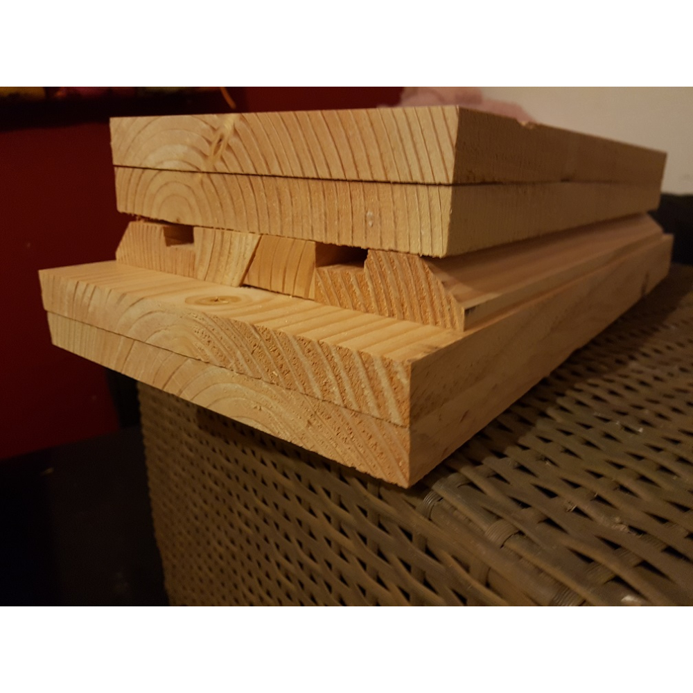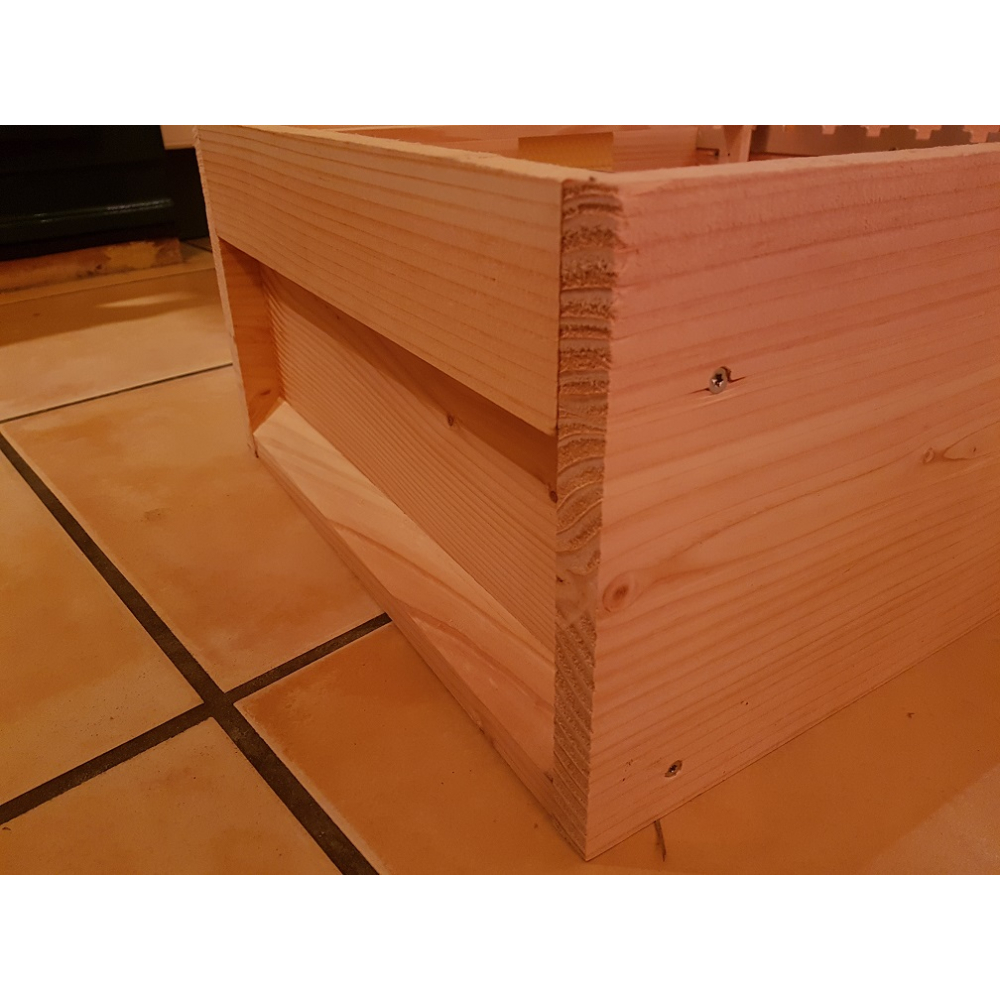 Deze broedkamers zijn gemaakt van douglas hout, onderdelen reeds op maat afgekort. De zijwanden zijn 1-zijdig geschaafd naar ca 18 mm, de voor- en achterwand 1-zijdig geschaafd naar 24 mm. De kasten zijn onbehandeld. Douglas staat erom bekend dat het onbehandeld (boven de grond) buiten toegepast mag worden.
