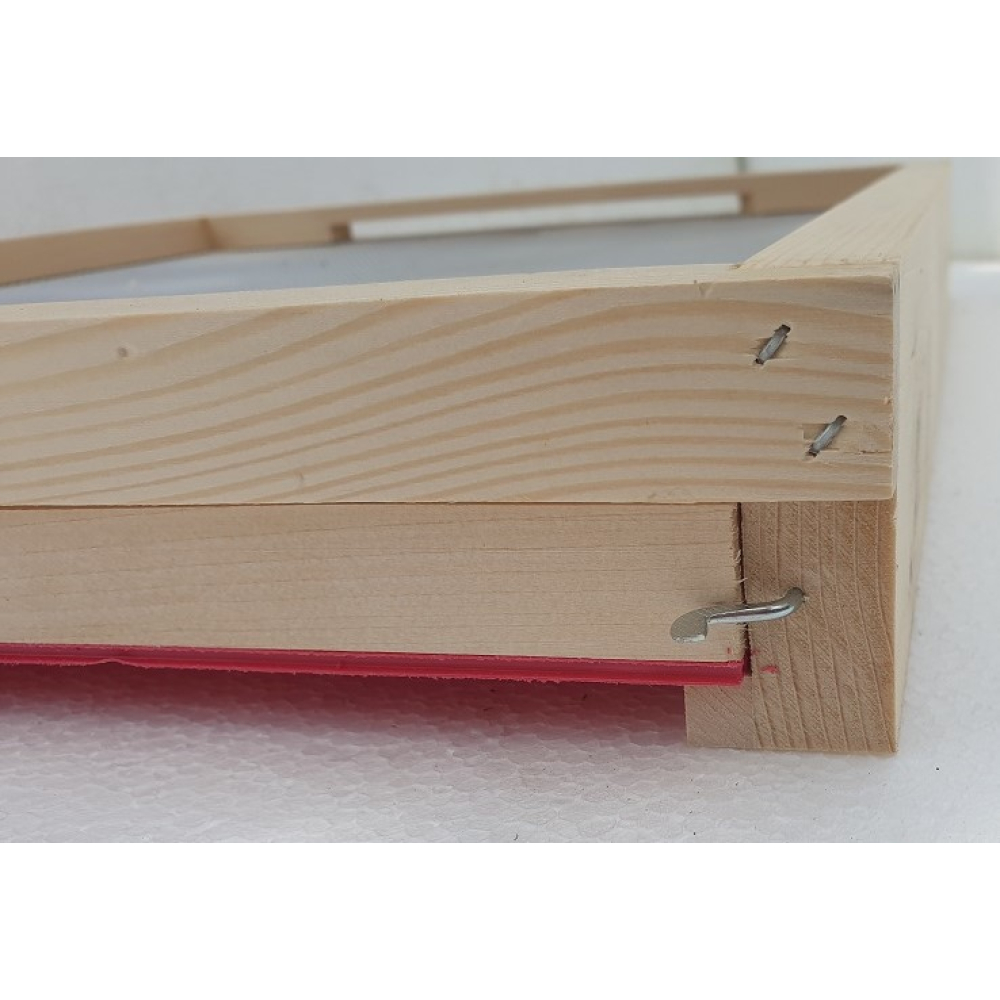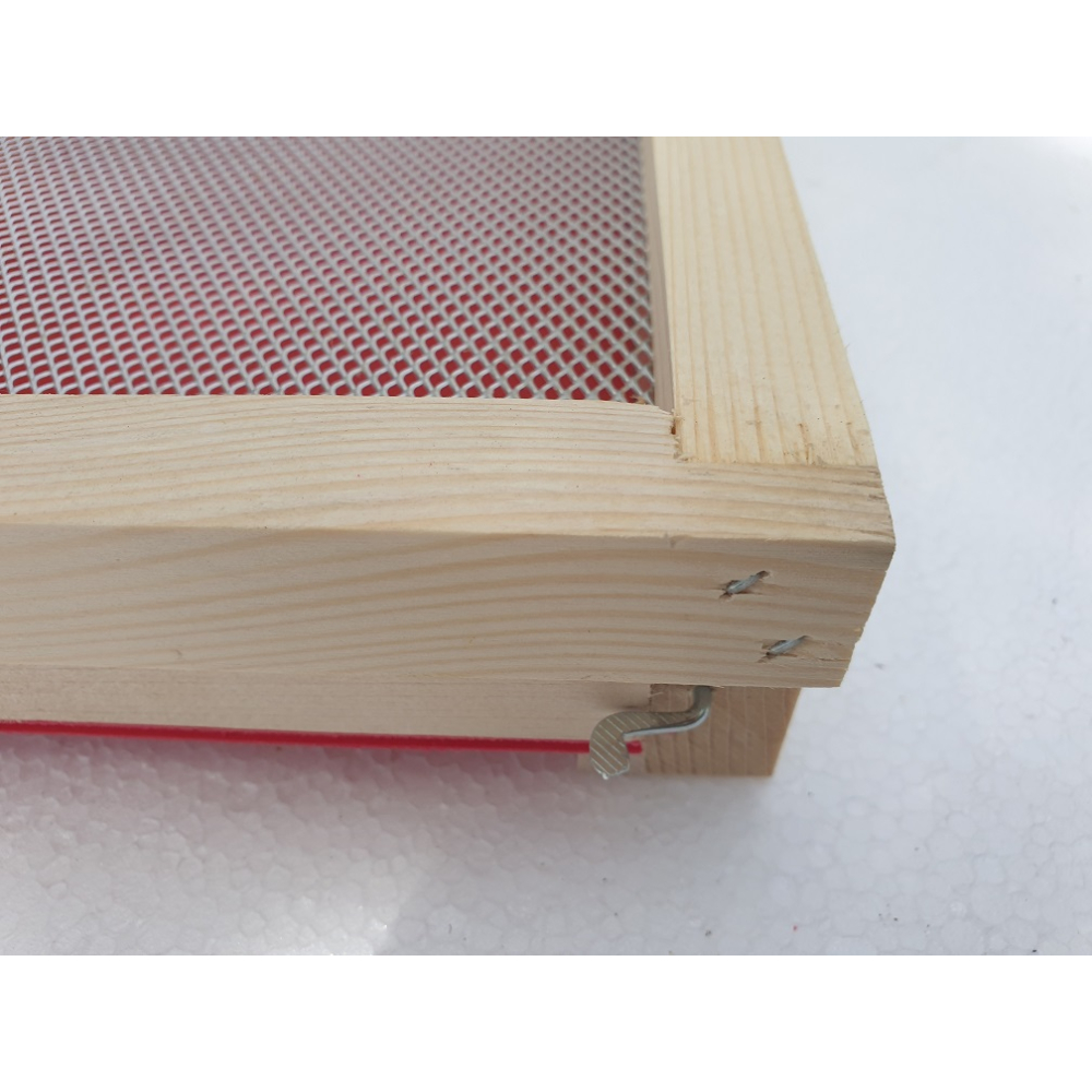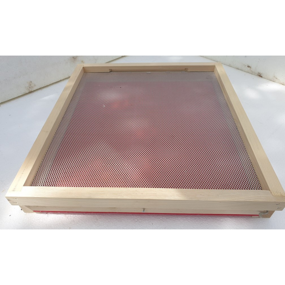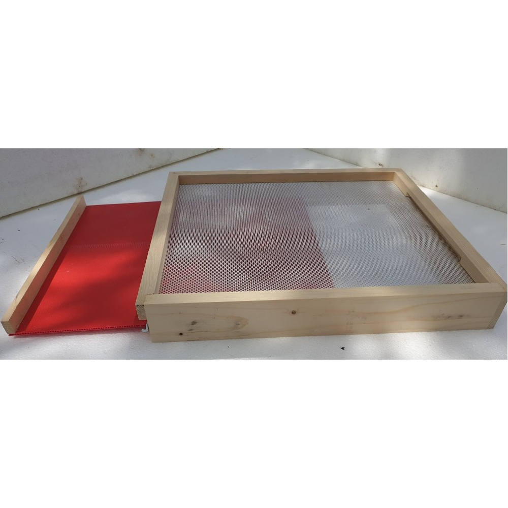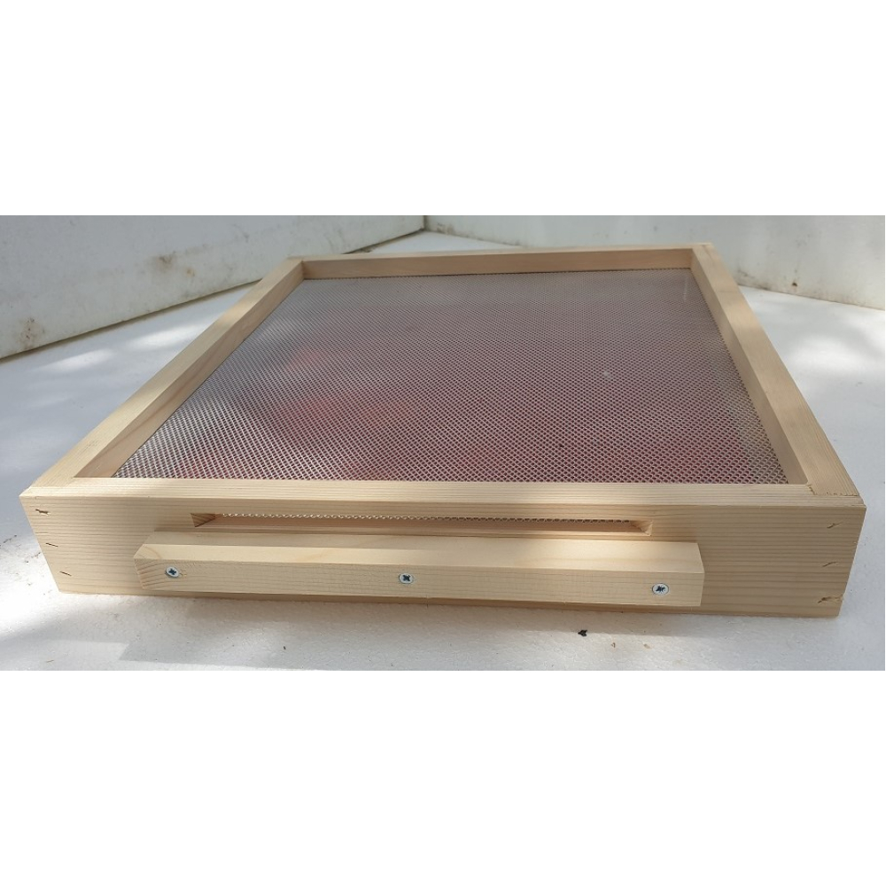 Een zelf ontwikkelde bodem voor spaarkasten, uitgevoerd in vurenhout. Inclusief vliegplankje, lade en vlieggatverkleiner.