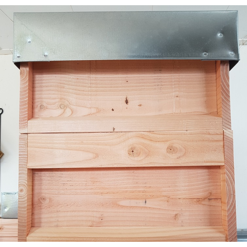 Verzinkt dak. Past goed op de spaarkasten.